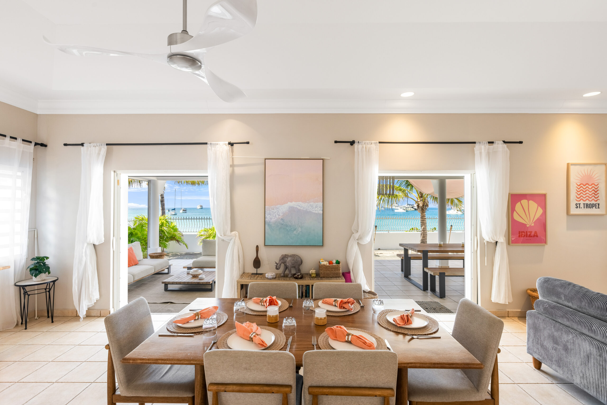 Wake up to the gentle sound of turquoise waves lapping just steps from your door in this stunning 3-bedroom, 3-bathroom beachfront villa directly on the pristine sands of Simpson Bay Beach — one of St. Maarten’s longest, most relaxed stretches of white sand.Perfectly positioned on the Dutch side of the island, this modern retreat offers direct beach access for morning strolls, sunset swims, or simply lounging with your toes in the powdery sand. Watch planes soar dramatically over nearby Maho Beach (a short drive away), or enjoy the quieter vibe here — fewer crowds, calm Caribbean waters ideal for swimming, and breathtaking views across the bay toward the famous Simpson Bay Lagoon and its yacht-filled horizon.Inside, the villa boasts contemporary, stylish furnishings throughout, with cool air conditioning in every room to keep things comfortable even on the warmest island days. The open living area flows seamlessly to outdoor spaces perfect for al fresco dining or unwinding with a cool drink.Key features include: